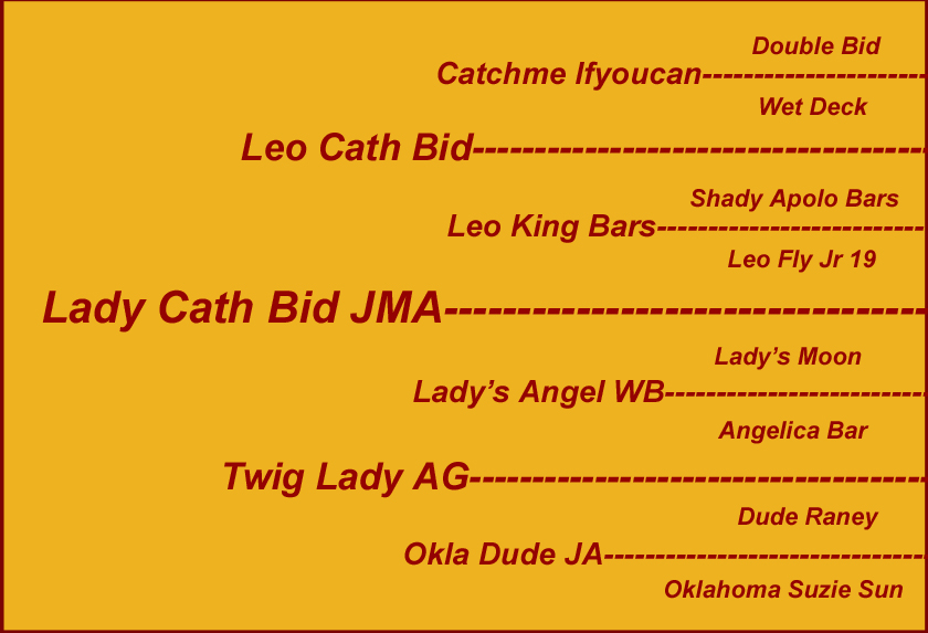 Leo Cath Bid- Produtor de mais de 1.300 pontos de registro de mérito 278 filhos registrados vigésimo segundo maior garanhão ABQM de todos os tempos. Destaque para: Indiana Bull 461 pontos, Skillo Zorrero 206 pontos, Hit Lady HED 120, Paje da Fenix 95 pontos, Kings Leo ZD 94 pontos, Peppy Leo Doc JMA 78 pontos, Pauli Cath JMA 71 pontos, Principe Cath JMA 38 pontos entre outros.